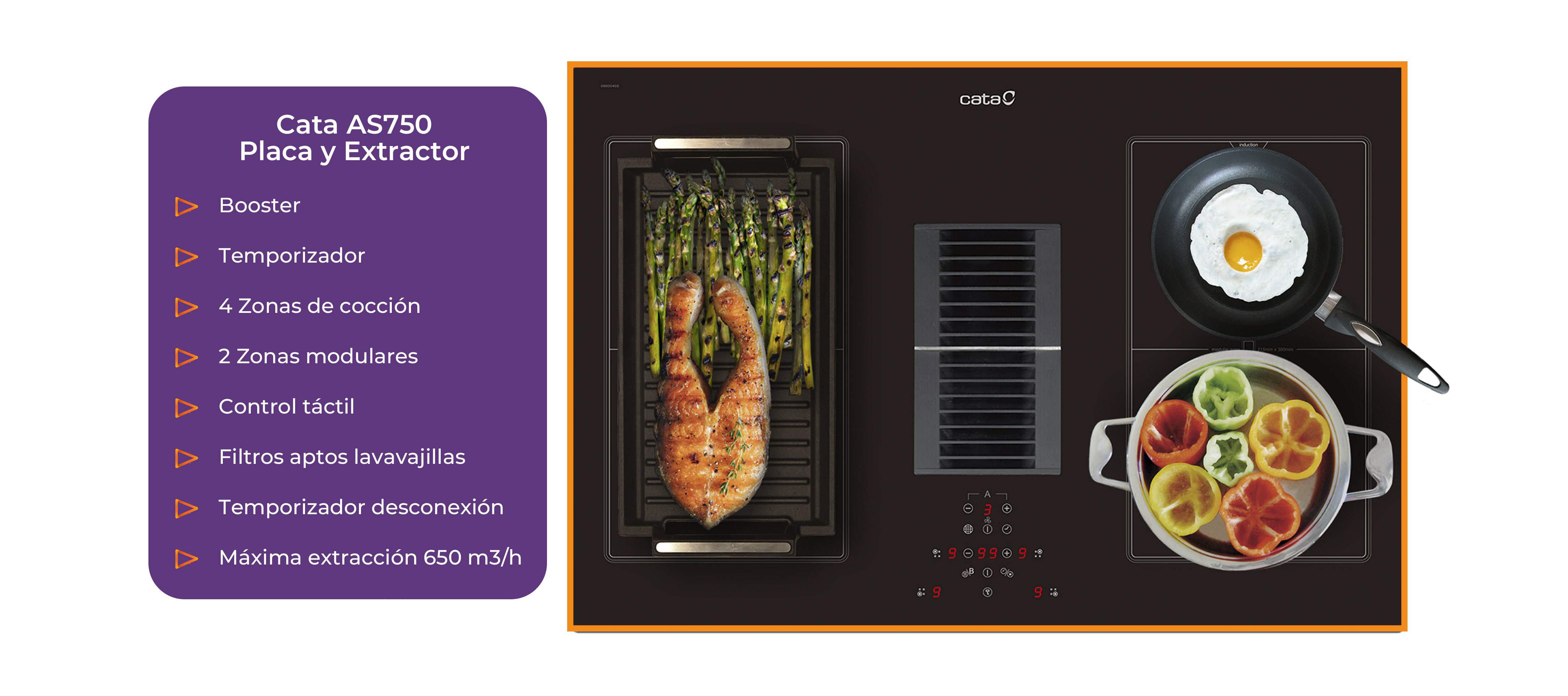 Cata AS750 - Placa de FlexIndução 4 Zonas com Extrator de Fumos