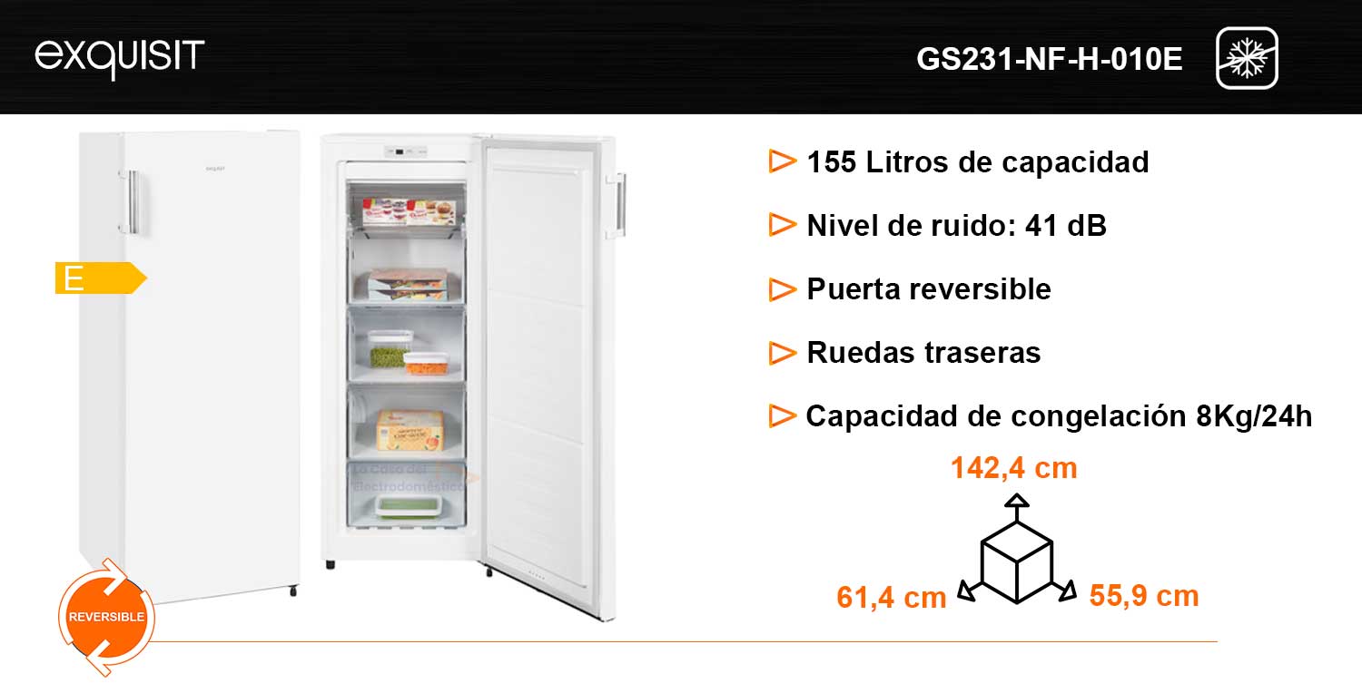 Exquisit GS231-NF-H-010E WEISS - Congelador NoFrost 143.4x55.9cm Classe E