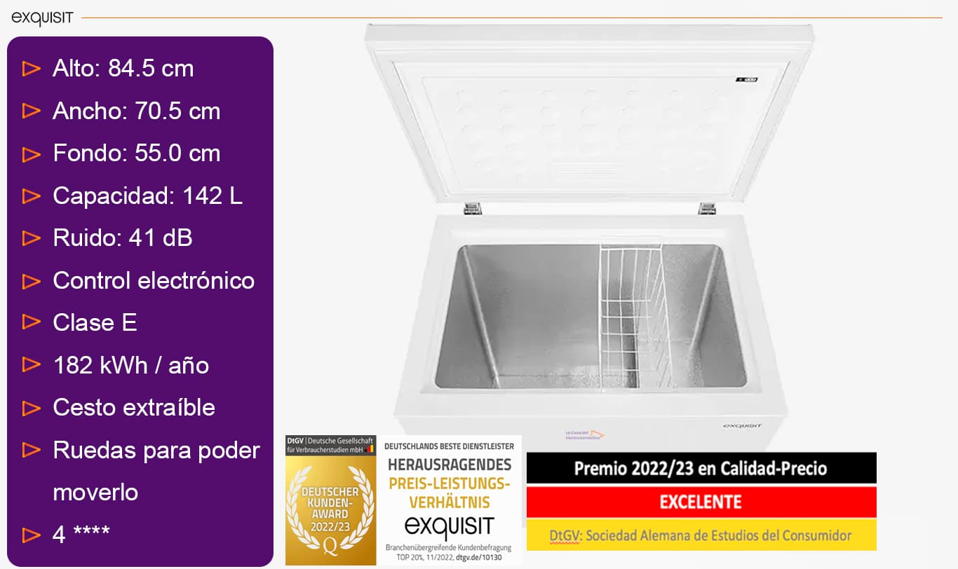 Exquisit GT150-E-040Eweiss - Arcón congelador de 142 L 84,5x70,5x55cm