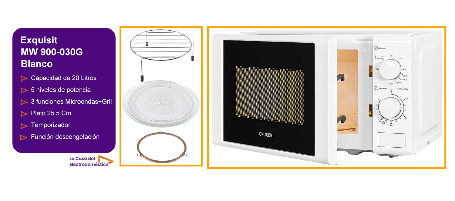 Exquisit MW 900-030GWEISS - Micro-ondas 20 litros 5 níveis Grill 3 funções combinadas