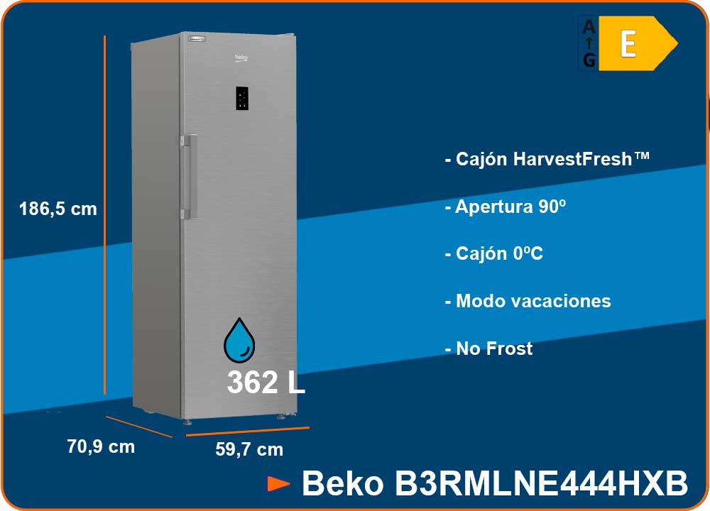 Beko B3RMLNE444HXB - Frigorífico 1 Puerta 186.5x59.7cm NoFrost Inox