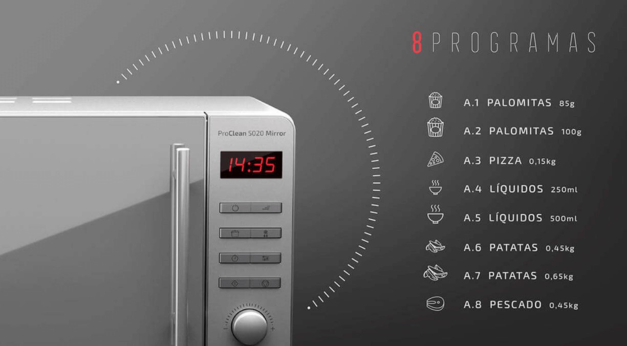 Cecotec 01532 - Microondas de 20L Proclean 5020 Porta espelhada 700W