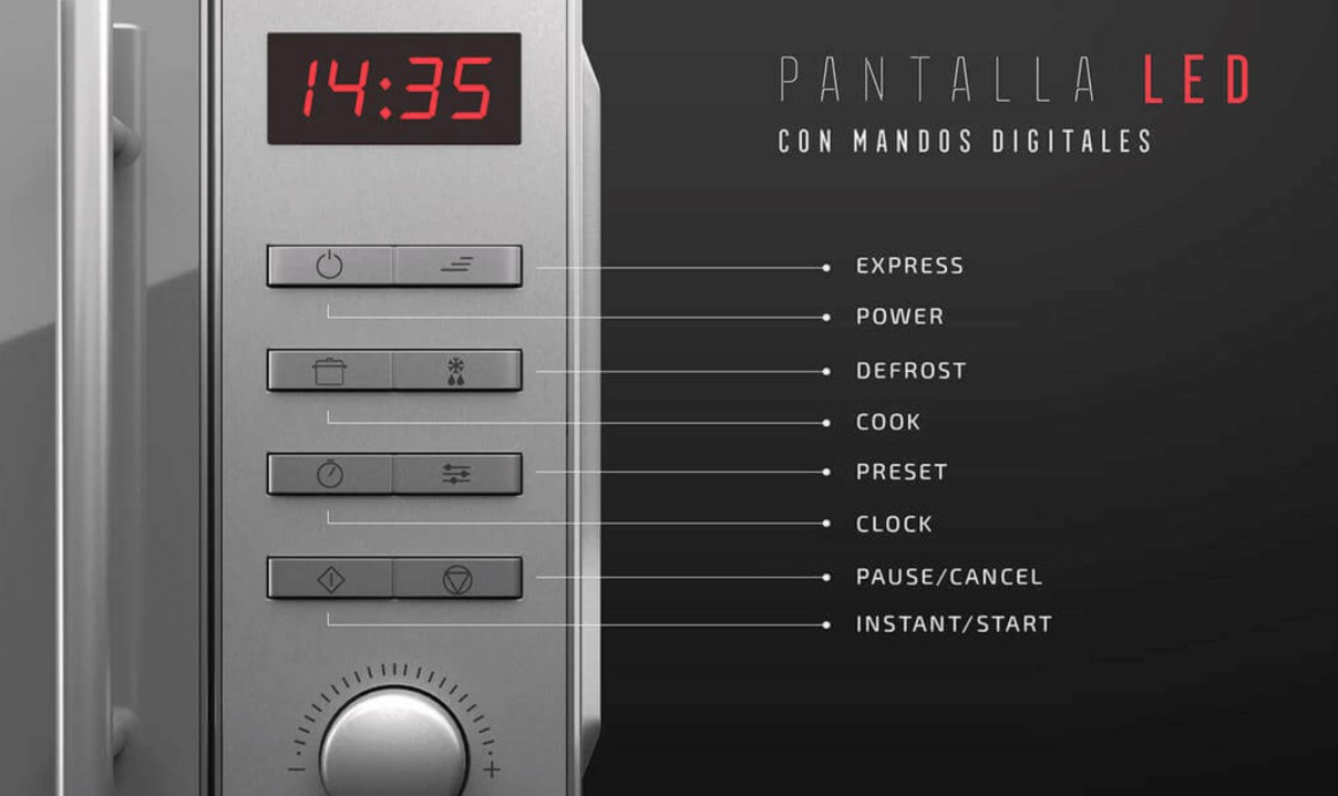 | Micro-ondas de aço inoxidável com capacidade de 20 litros. | |