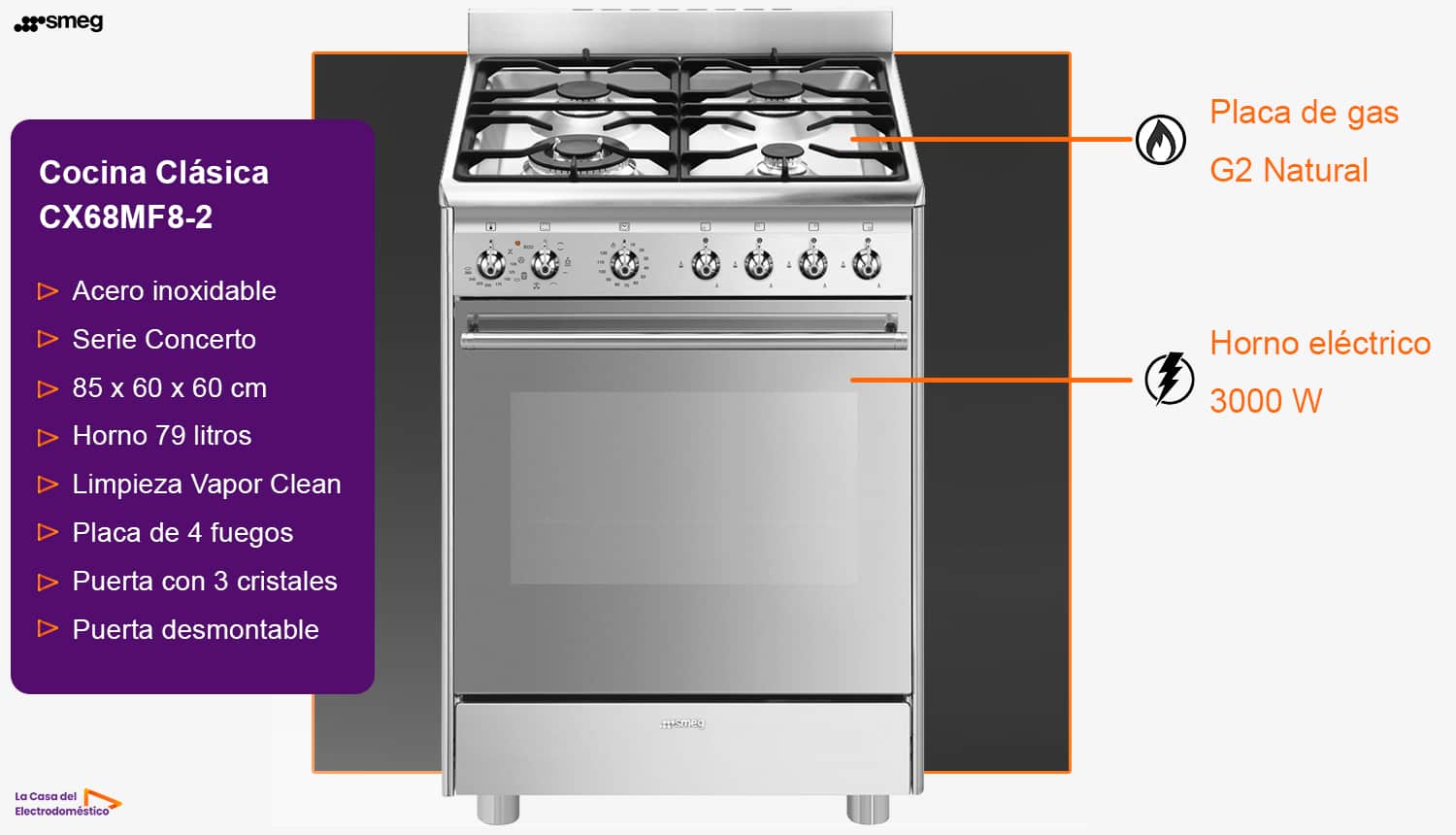 Smeg CX68MF8-2 - Fogão Clássico 60x60cm Inox Placa a Gás, Forno Elétrico