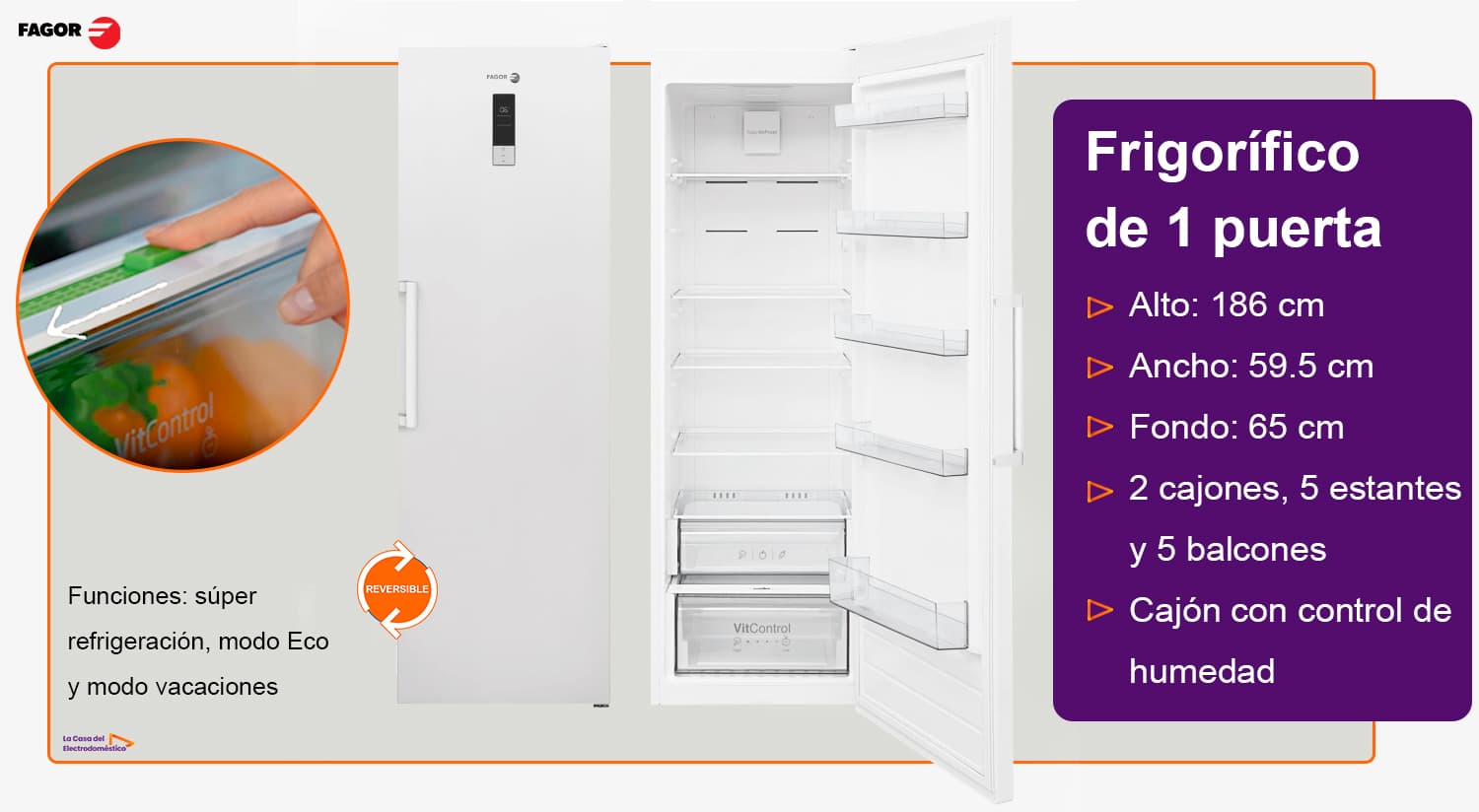 Fagor 3FFK-1875 - Frigorífico de 1 porta 186 x 59.5 x 65 cm