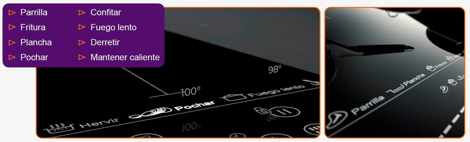| 8 funções diretas | Grelhar, Fritar, Chapa, Cozer, Confitar, Lume baixo, Derreter e Manter quente |
