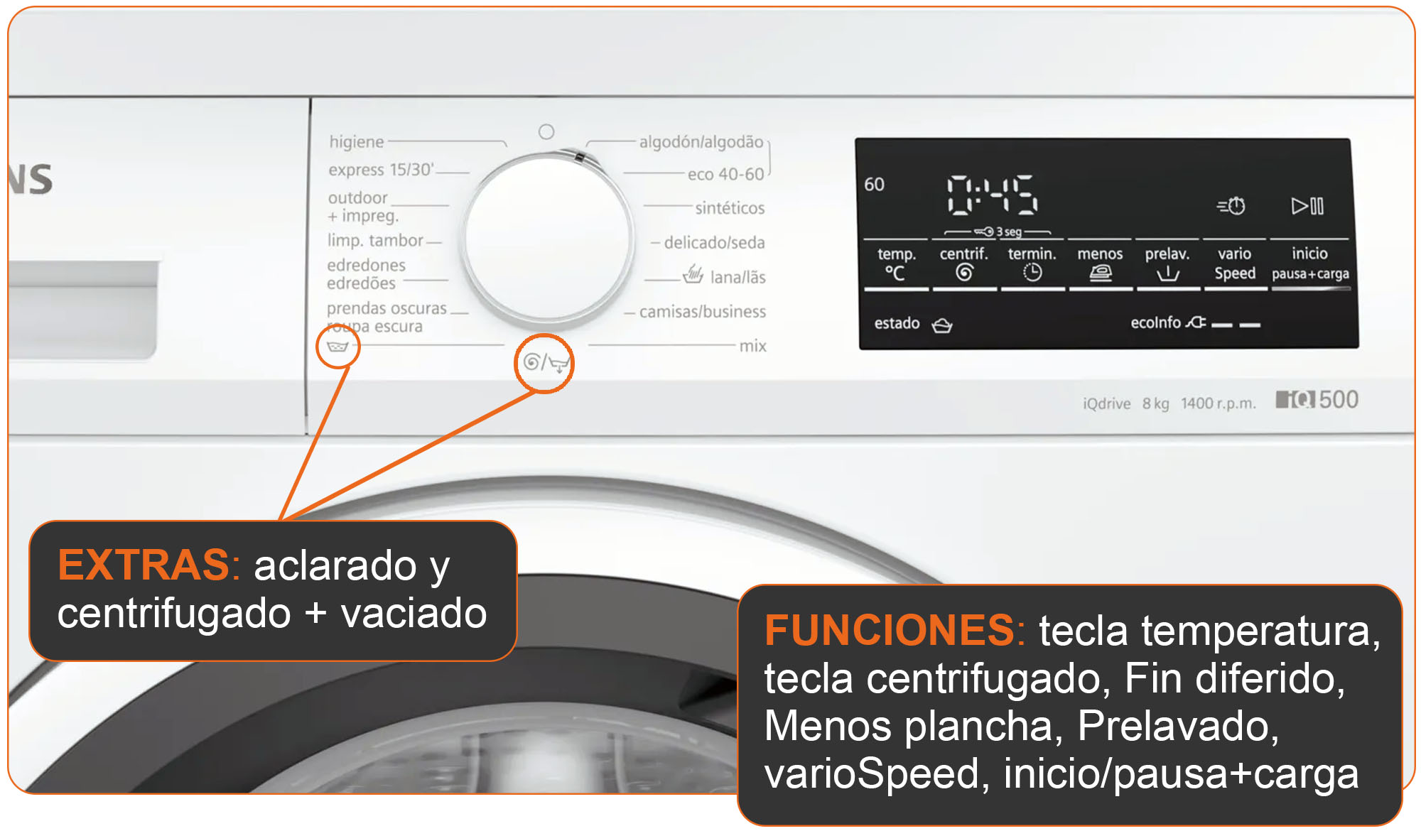 | Velocidad máxima de centrifugado | 1.400 rpm |