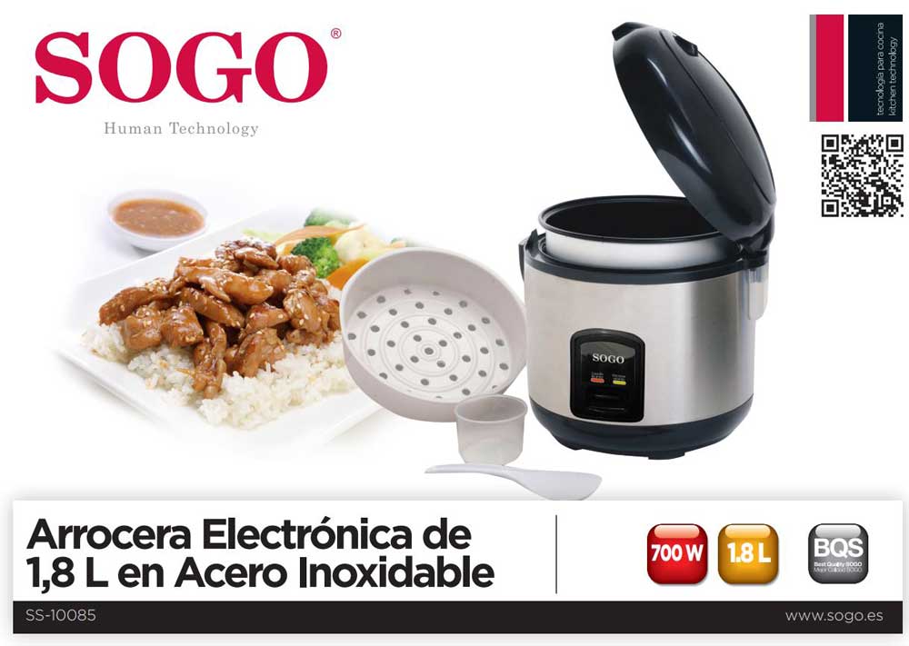 Sogo ARROZ-10085 - Panela de arroz de 1,8 L com bandeja a vapor antiaderente.